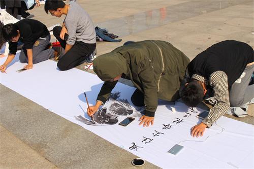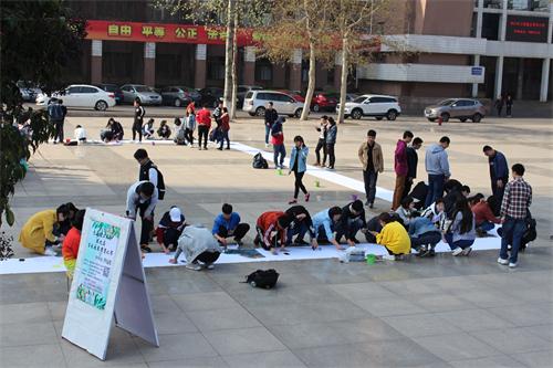 4月15日上午,由校团委主办,土木工程学院承办的365完美体育第九届百米长卷书画比赛在市北校区南院科技广场举办。