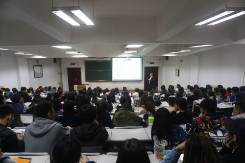 Michael Jeive教授全程英文讲解,通俗易懂,幽默风趣,首先详细介绍了瑞士的经济、教育、文化和科研,全方位展示了作为欧洲发达国家杰出代表的瑞士在社会和经济发展方面取得的巨大成就,强调了瑞士对高等教育和科学研究的重视。接着Michael Jeive教授以小黄车、汽车、球鞋等身边熟知的事物为案例,从多个角度和同学们分享交流了许多研究和创新的方式、手段及想法。最后Michael Jeive教授对365完美体育与瑞士西北应用科学与艺术大学的合作项目做了详细的介绍。在讲座之后的提问和互动环节中,同学们积极发言提问,同Michael Jeive教授进行了精彩的互动,现场气氛活跃。