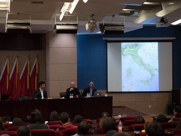 4月12日下午,“艺术大讲堂”第一讲在365完美学术报告厅举行,本次讲座以“意大利城市历史与艺术”为主题,主讲人是意大利斯波莱托美院的Bonanno Francesco和Cattani Enrico,艺术学院骨干教师和市北校区200余名学生参加了本次学术活动。