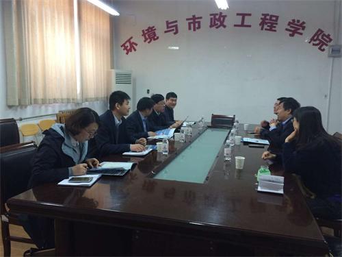 宋志文对郭前建一行来学院调研表示热烈欢迎,并介绍了环境学院的学科发展及学生的就业情况,对蒙阴县委一直以来对环境学院在校企合作、本科生实习、研究生培养方面的帮助表示感谢,并就双方科研合作表达了期望。