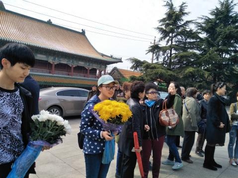 环境学院的同学们在到达烈士雕像后静静肃立,怀着沉重而又尊敬的心情,向革命烈士们低头三鞠躬,并进行了三分钟默哀,以寄托他们对革命先烈的深切怀念以及无限哀思。
