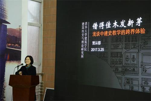 清华大学贺从容老师首先发表了题为:“借得佳木发新芽——浅谈中国建筑史教学的跨界体验”的演讲。她以中国建筑史研究学术历程为引言,结合当前学科发展及执业教育背景,从跨界体验、跨界设计、跨界教学、跨界建模、跨界测量、跨界社会调查等六个方面,阐述了跨界的尝试对于中国古代建筑教学的重要意义和作用。