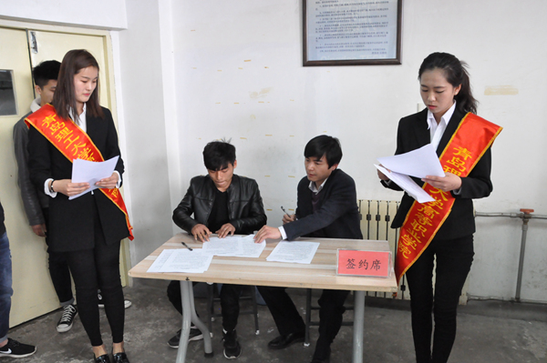 会上,冯英豪与年级辅导员、辅导员与分管年级各班主要班干部分别签订了安全稳定承诺责任书。