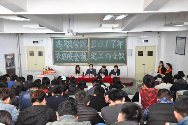 3月23日中午,高等职业学院在黄岛长江路校区2教阶202教室召开学生安全稳定工作会议,传达贯彻学校2017年校园安全稳定工作会议精神,部署学院学生安全稳定工作。学院副书记冯英豪、各年级辅导员,各班主要班干部、宿舍长以及院学生公寓管理委员会成员参加会议。辅导员宋晓峰主持会议。